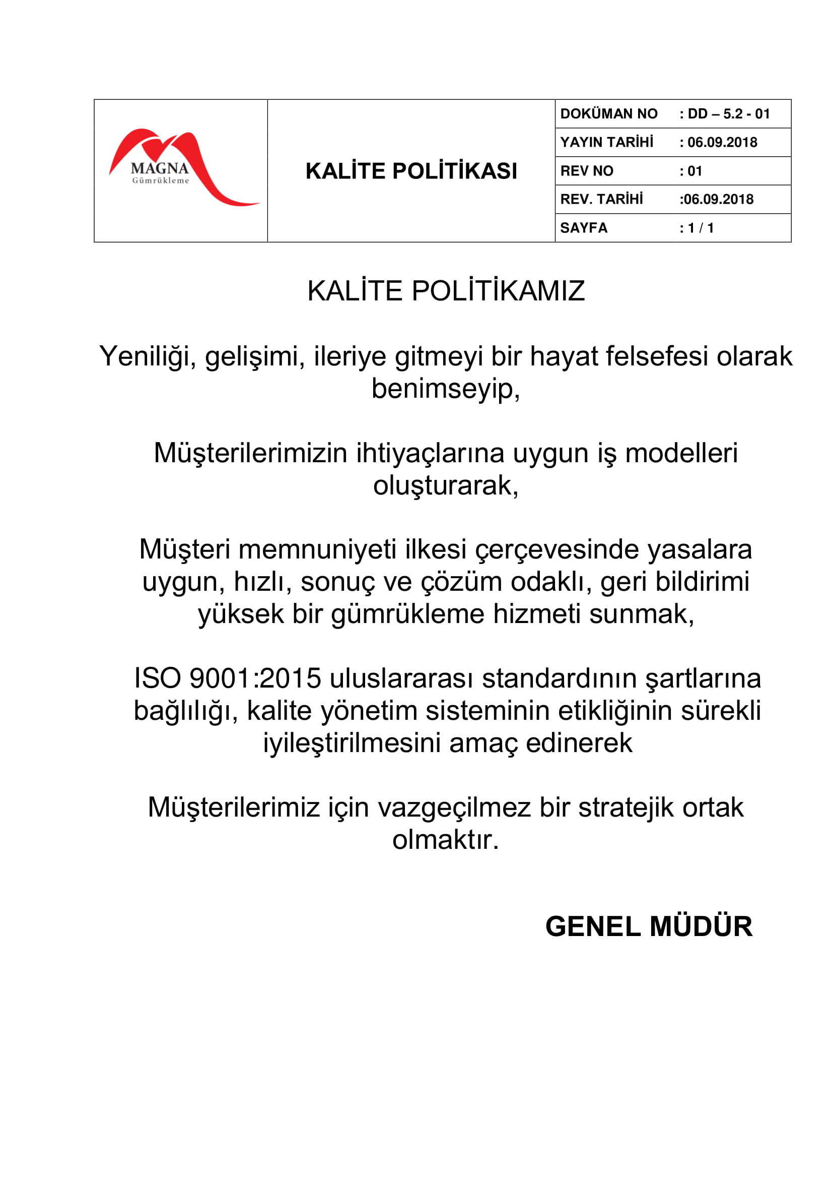 Artık değişime ve değişim hızına ayak uyduramayan kuruluşların ayakta kalabilmesi çok zordur. İşletmelerin ayakta kalabilmeleri ancak tüm sektörlerde müşteri ihtiyaç ve beklentilerine uygun mal üretiminin veya hizmetin sağlanmasıyla gerçekleşebilecektir. Bu sebeple, kuruluşlarda, tasarım aşamasından başlayarak üretim, pazarlama ve satış sonrası hizmetlere kadar tüm aşamaları kapsayan ve sürekli iyileşmeyi hedefleyen Kalite Yönetim Sistemi'nin uygulanması olmazsa olmaz bir şart olmuştur.